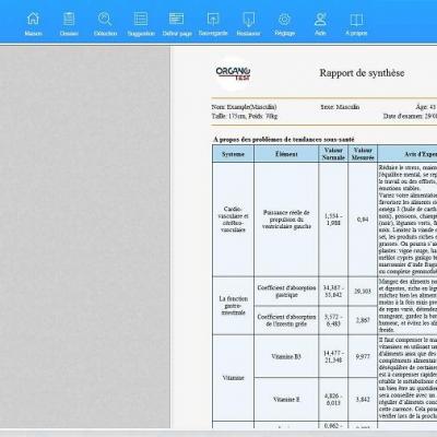 - Cerveau : irrigation sanguine du cerveau, artériosclérose cérébrale, état de fonctionnement des nerfs crâniens, indice des émotions, indice de mémoire (ZS).